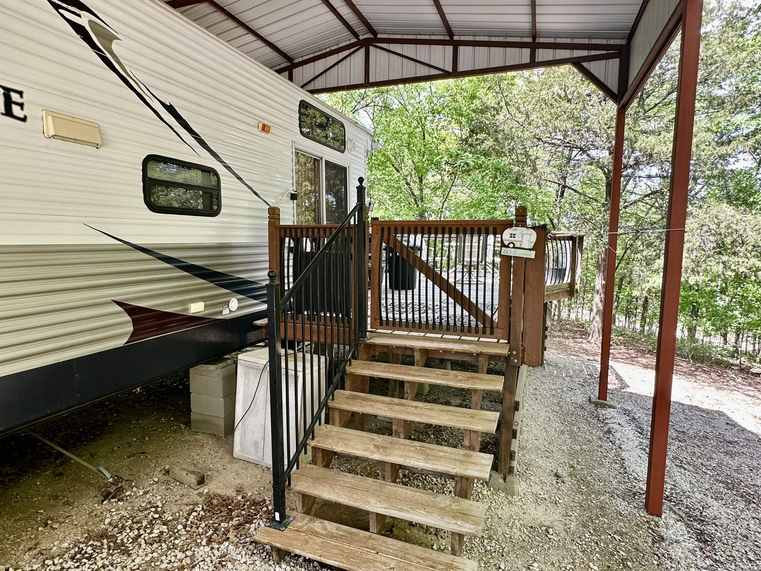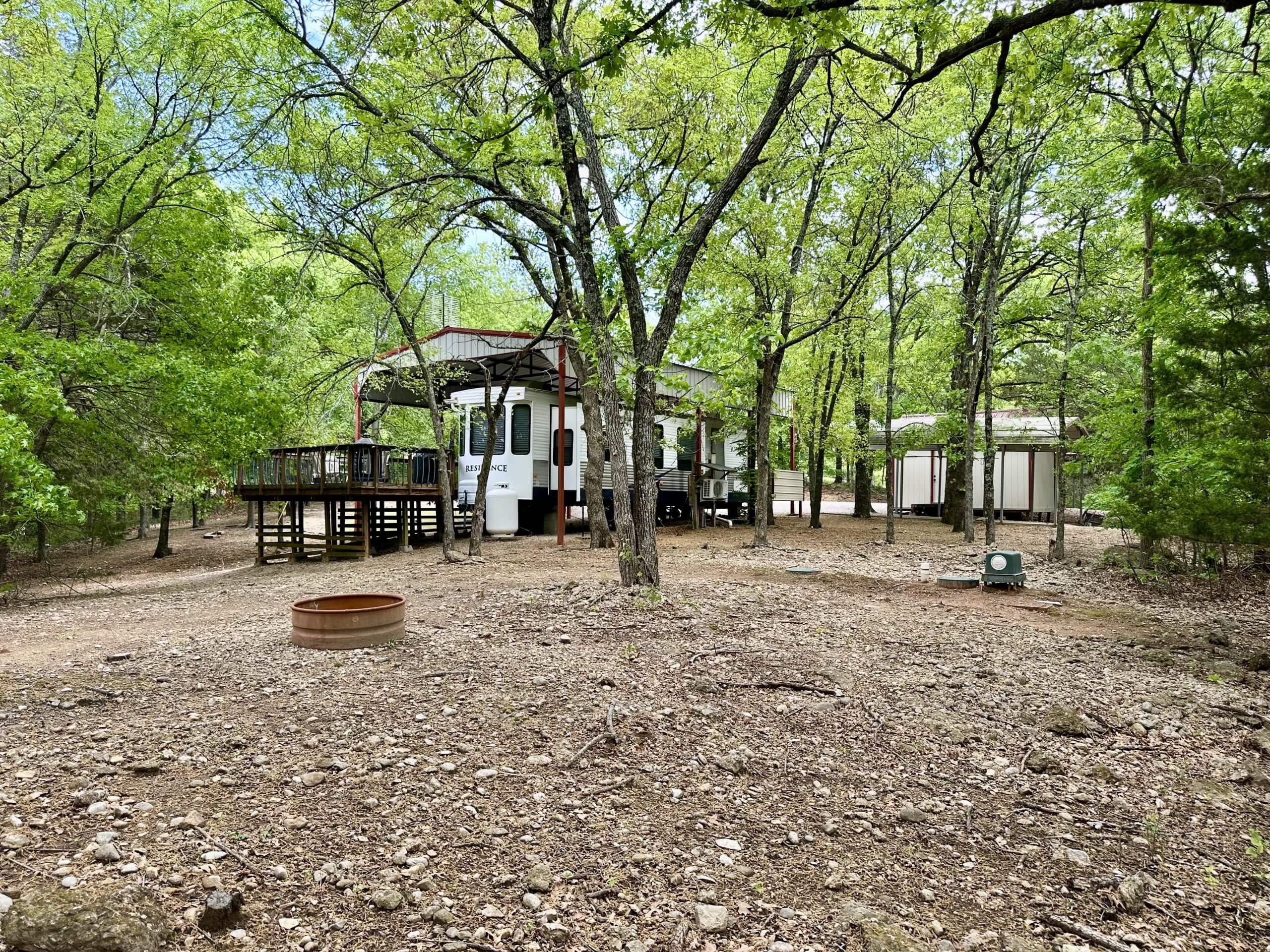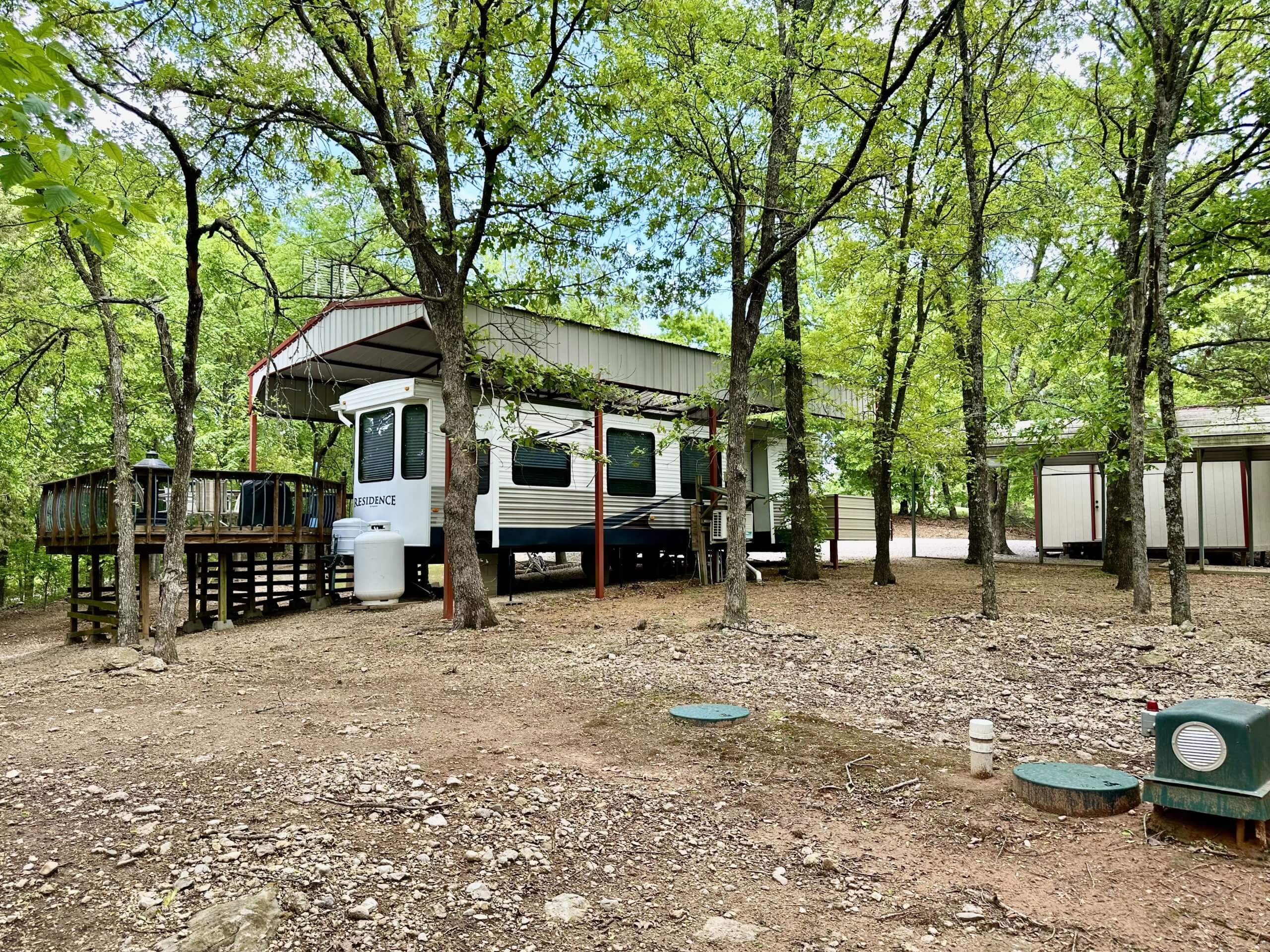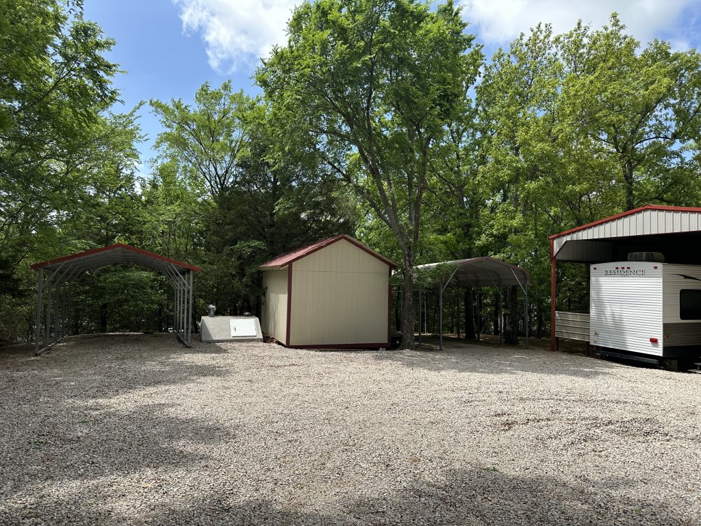 Turn-Key Opportunity. This 1 Acre (mol) includes a 40′ RV with 1 Bedroom, Kitchen, Bath, CH&A and a Mini Split for Additional Heat and Air. Kitchen-Living Room Open Floor Plan includes a Fireplace….Ideal for weekend getaways or a vacation spot. The property provides privacy and quick access to fishing and boating….Additional Improvements: Custom-Built Deck, designed for easy access and entertainment, Rural Water, PEC Electric and Aerobic Sewer System….RV has a Steel Framed Metal Cover and Mobile Home Tiedowns….Property also includes 2 Carports, Storm Cellar and Nice Storage Building….Ready to Start making lifetime memories at the lake!
