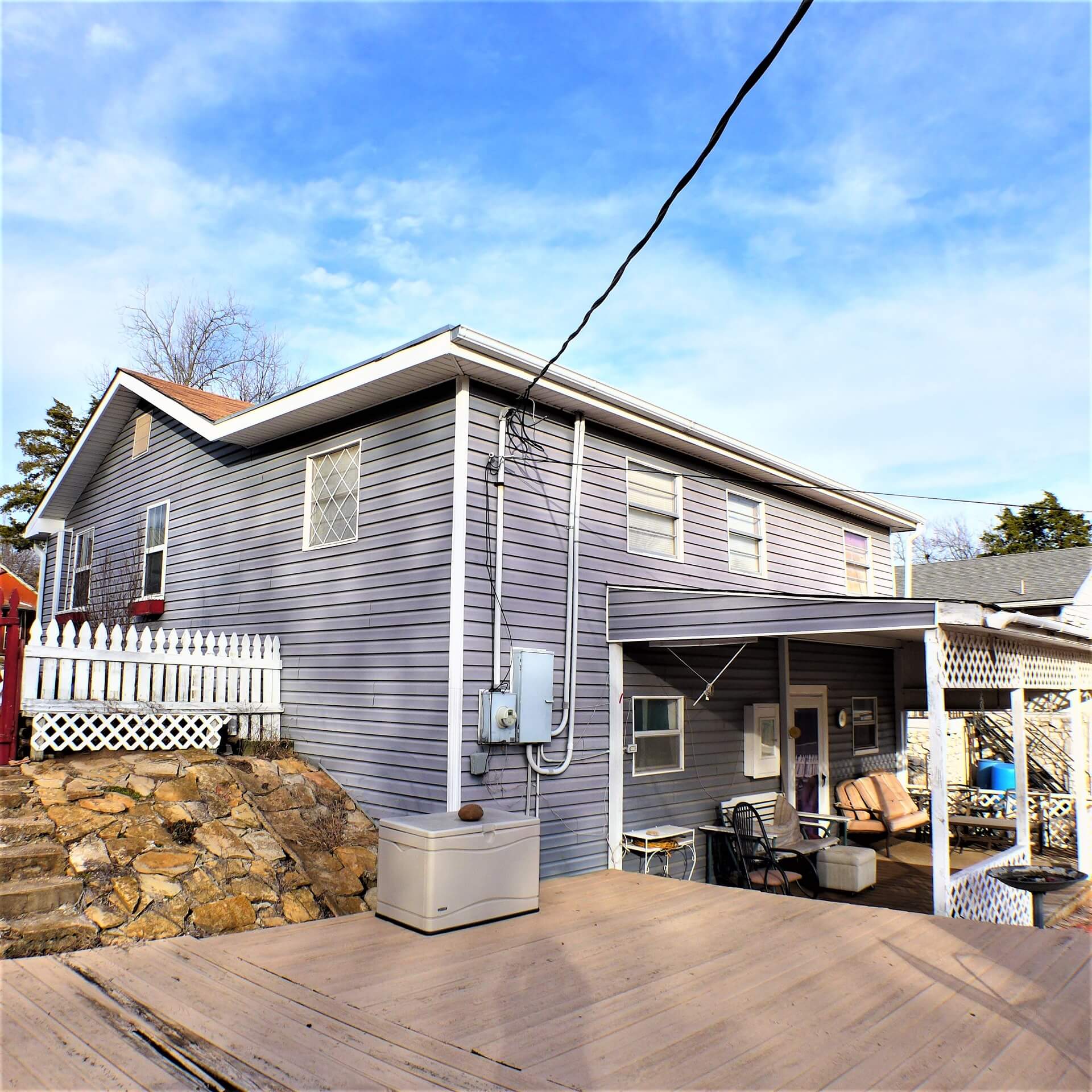 | Exterior: | Vinyl Siding.... Roof Asphalt Shingles...Detached 2 Car Garage....City Water and Sewer.....Large Custom Built Deck.....Large Covered Backporch |